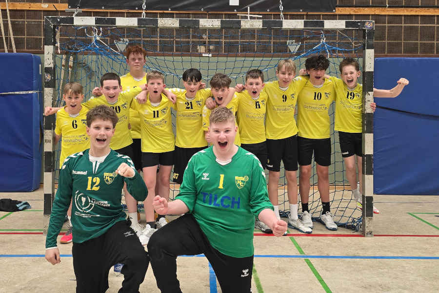 Dies fruchtete hervorragend! Malo Kühn begann tollkühn und erzielte die ersten 3 Tore für den NHC auf der halblinken Königsposition. 1:3 lagen wir so in Front. Die Rechnung ging insgesamt auf. Wir zwangen den Gegner zu Würfen aus dem Rückraum, die leichte Beute für den starken Eike Splittgerber waren. Die gewonnenen Bälle wurden mit Tempo nach vorne getragen und in schnelle einfache Tore umgewandelt. Hannes Möslein gelang in der 8. Minute ein lupenreiner Hattrick vom 5:8 bis 5:10, so dass der Gegner die erste Auszeit nehmen musste. Zudem war Hannes am heutigen Tag der Ruhepol und Chef auf dem Platz. Sonderlob an ihn für die vorbildliche Leistung. Den 5 Tore Vorsprung hielten wir trotz einiger Wechsel bis zur Halbzeit beim Stand von 16:21. Gefährlich wurde es immer nur dann, wenn wir zu offensiv agierten und die Nebenleute in der Abwehr nicht richtig unterstützten. Dies sprachen die Trainer in der Halbzeit klar an. Defensiver agieren und weiterhin den Gegner zu Fehlern und unüberlegten Würfen zwingen. Das klappte dann auch in der zweiten Hälfte sehr gut. Zusätzlich drehte Florian Schulze richtig auf und erzielte gemeinsam mit Malo Kühn schnelle und wuchtige Tore au s dem Rückraum. Jonas Weißke führte zudem zusammen mit Lenni Micheletti klug Regie in der Mitte und unsere Kreisläufer Julian Rolheiser und Noah Lohmann machten wichtige Tore und stabilisierten die Abwehr. Besonders zufrieden zeigten sich die Trainer mit der guten Leistung der Außenspieler. Lucas Ilsemann und später Eusebios Bornemann kamen durch kluge Pässe ihrer Mitspieler zu einigen wichtigen Treffern. Besonders Ilsemann, der auch auf der ungewohnten rechten Seite agierte, zeigte sich treffsicher und klug bei der Wurfauswahl. Ein starkes Spiel von ihm, da er auch die Anweisungen der Coaches vertrauensvoll umsetzte. So hatten wir das Spiel ungefährdet im Griff und bauten in der zweiten Hälfte den Vorsprung immer weiter aus. Am Ende feierten wir ein überzeugendes und völlig verdientes