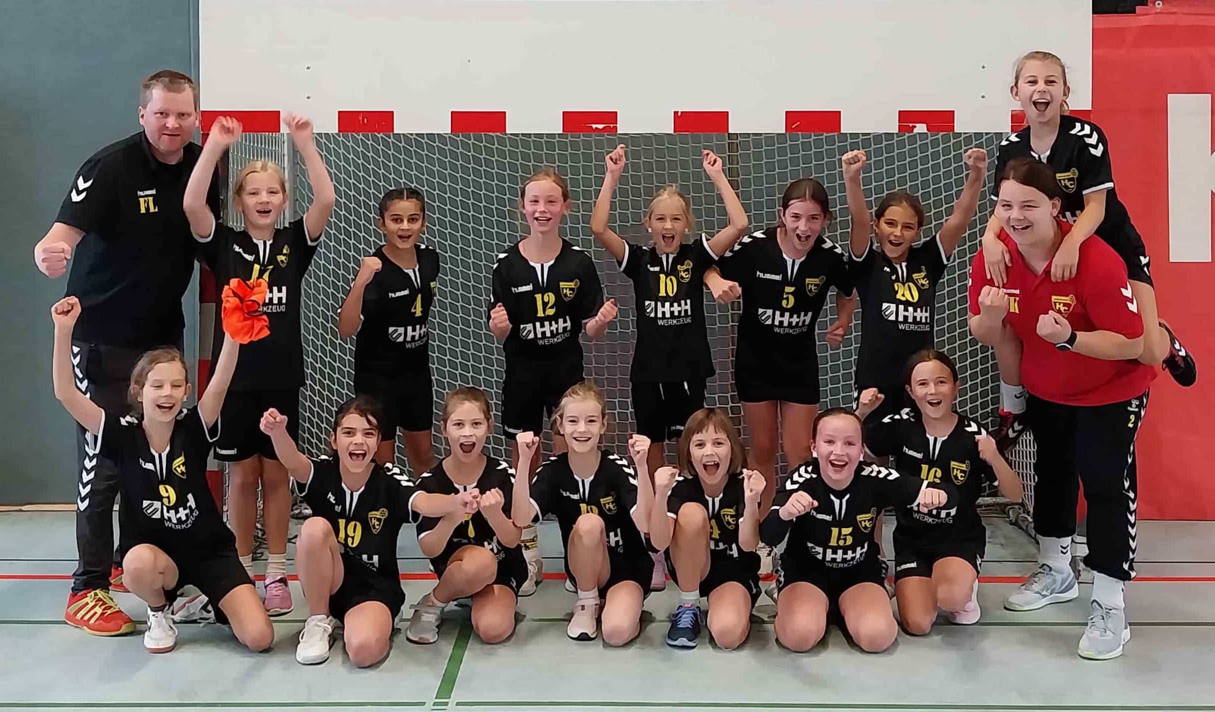 Epilog: Riesen Freude bei unseren Mädchen –das berüchtigte „Schuhwallhölle, Schuhwallhölle! Hey! Hey!“ wurde im Kreis freudig gebrüllt. Die Zuschauer haben hier ein bemerkenswertes Handballspiel voll Spannung und Einsatz erlebt. Das war Werbung für den Handball. Der Dank geht an alle Zuschauer, die uns unterstützt haben, sowie an unsere beiden Schiedsrichterinnen, die diese Spitzenpartie souverän geleitet haben.
