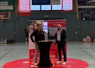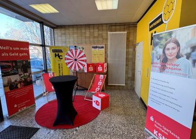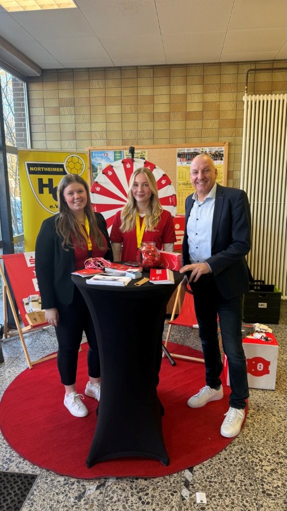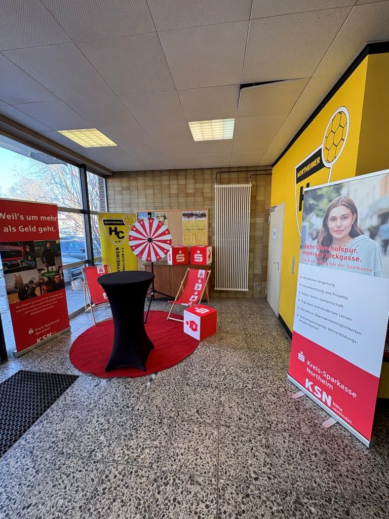Beim Doppelheimspieltag des Northeimer HC übernahm der Hauptsponsor des NHC die Kreis-Sparkasse Northeim das Spieltagssponsoring und sorgte für eine tolle Aktion in der Halle. Mit einem Glücksrad im Foyer luden die Azubis Celina und Emma die Zuschauerinnen und Zuschauer zum Mitmachen ein. Ob kleine oder größere Gewinne oder einfach nur der Spaß am Drehen – das Glücksrad war in den Spielpausen ein echter Publikumsmagnet. Moderator Kevin Schiffer führte vor dem Anpfiff des Herren Spiels noch ein interessantes Interview mit KSN Vorstand Bernd Sommer. Dieser berichtete u. a. vom attraktiven Ausbildungsberuf des Bankkaufmanns/-frau und warum die KSN die Region und auch den Sport fördert.