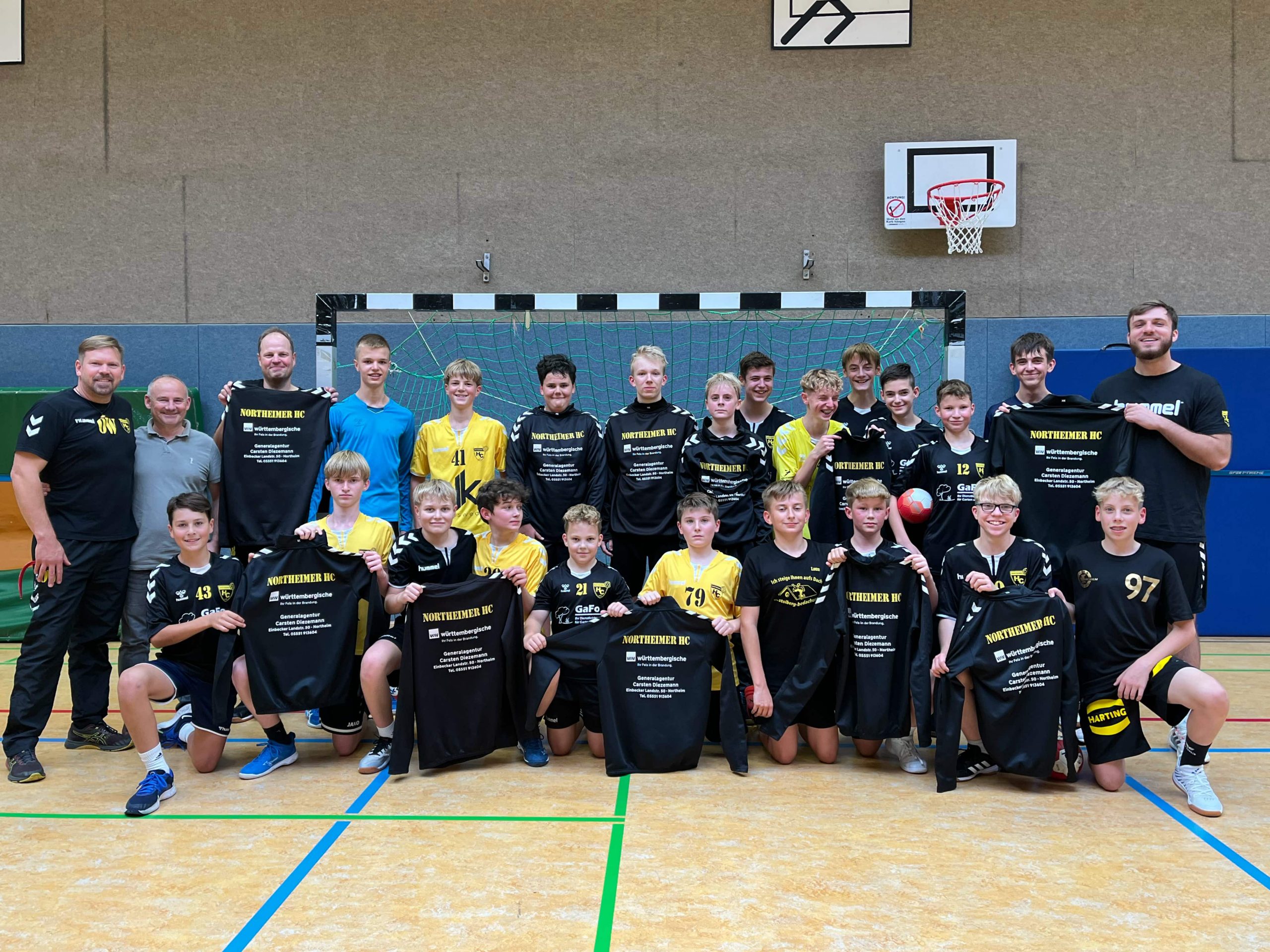 Wie schon seit einigen Jahren, steht Carsten Diezemann mit seiner Würtembergischen Versicherung auch in dieser Saison den Kids vom Northeimer HC als Sponsor zur Seite. Er sponserte die Trainingstops der immerhin 24 C-Jungen des NHC. Bei einem spontanen Treffen während einer Trainingseinheit sagten die Jungs Danke! „Selbst ein begeisterter Sportler und Vater sportbegeisterter Jungs, lässt es sich Carsten nicht nehmen, Kinder und Jugendliche bei der Ausübung ihrer Leidenschaft zu unterstützen. Für uns ist ein solches Engagement nicht selbstverständlich, und daher bedanken wir uns ganz herzlich für das Sponsering!“, so C-Jugendtrainer Joe Schuster und Ollo Wode beim Besuch von Carsten Diezemann.