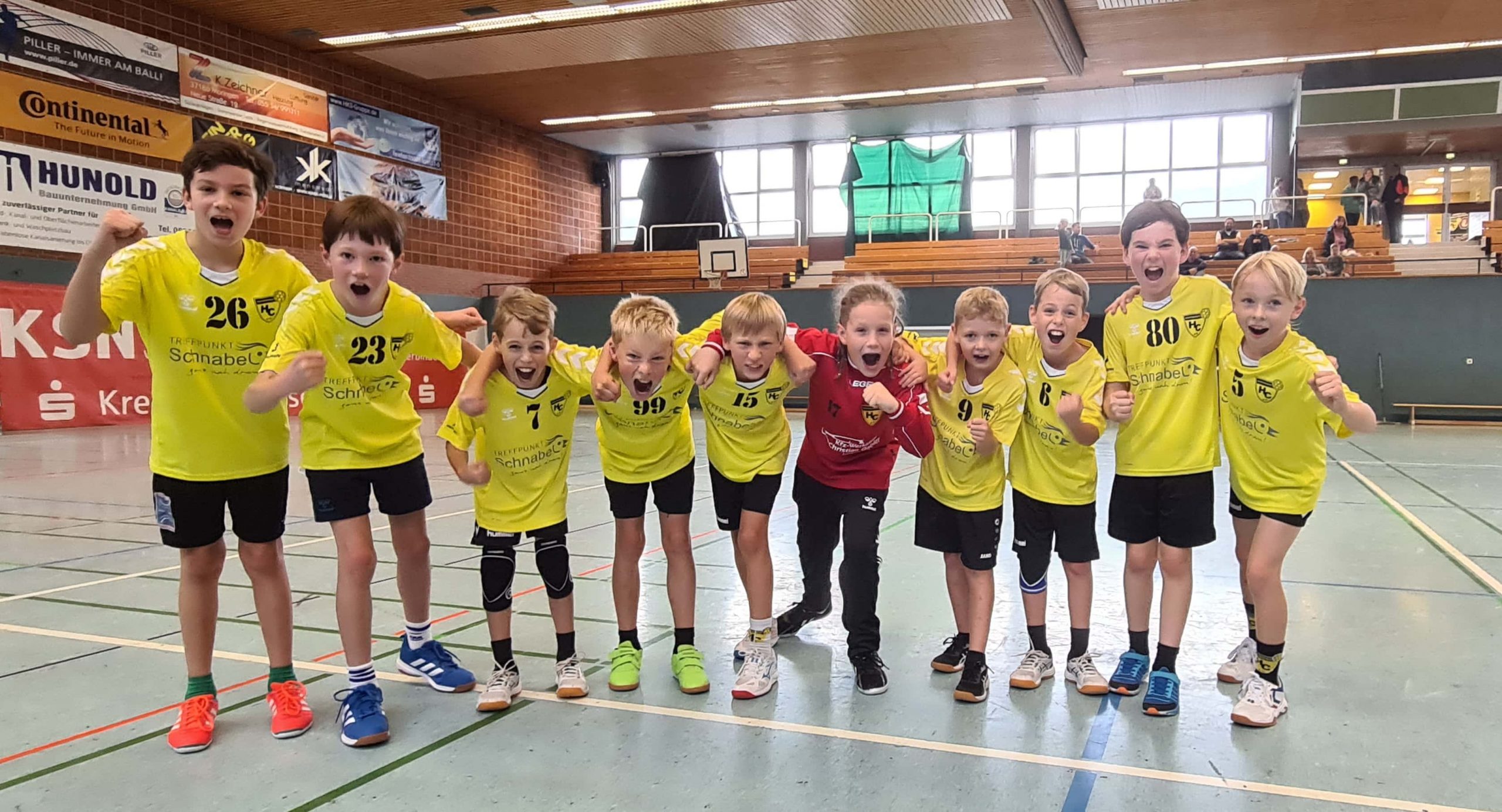 So war von Beginn an klar, dass man mit den Kräften gegen eine körperlich überlegene Truppe aus Moringen haushalten musste. Trainerfuchs Alexander Weiske hatte die Gäste des MTV Moringen sehr gut eingestellt. Das Spiel begann in der 1. HZ absolut auf Augenhöhe. Moringen legte vor, der NHC glich aus. Anfangs waren unsere Jungs noch zu nervös und versuchten zu oft mit dem Kopf durch die Wand zu marschieren.So lud man den Gegner zu leichten Gegentoren ein. Der auch sehr starke Torhüter der Moringer machte es dem NHC schwer dranzubleiben. Die Führung der Moringer nach 10 Minuten mit 5:7 war folgerichtig und verdient. Erst durch die dann genommene Auszeit besannen sich die Jungs des NHC wieder auf Ihre Tugenden: Kurzpaßspiel und stabile Abwehrarbeit. So liess der bärenstarke Eike Splittgerber im Tor nur noch einen Treffer zu und der NHC zog auf 12:8 bis zur Halbzeit davon. In der Halbzeit mussten die Jungs erst einmal durchpusten. Die Moringer verlangten alles ab. Im nun folgenden 6 vs. 6 in der 2. Halbzeit stimmten die Trainer den NHC darauf ein, mit den kurzen Pässen weiter zu machen und warnten vor den Moringer Kontern. Und jetzt waren die Jungs auch da. Angeführt von einem sehr gut aufgelegten Moritz Funke, zeigte jeder Spieler sein Können und trug sich in die Torschützenliste ein. So ergab sich ein munteres Spiel auf Augenhöhe, bei dem sich allerdings der ausgeglichene und erfahrenere Kader des NHC durchsetzen konnte. Nach 15:10, über ein 19:13 endete die Partie verdient 24:17 für den NHC.